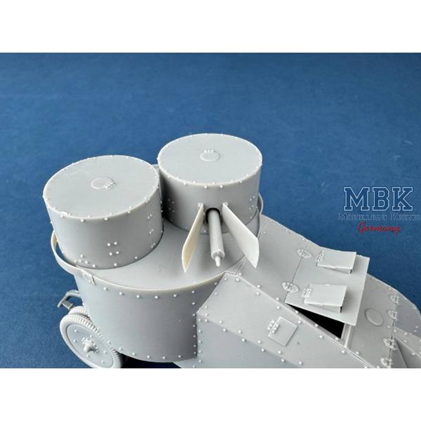 The Mgebrov-R armoured car is a highly detailed plastic model kit representing one of the most distinctive and technically ambitious Russian armoured vehicles of the First World War. Designed under the leadership of engineer A. N. Mgebrov, this vehicle combined innovative armour layouts with advanced protective concepts for its era. Although produced only in limited numbers, the Mgebrov-R became a remarkable example of early Russian armoured car development and remains an important historical prototype.