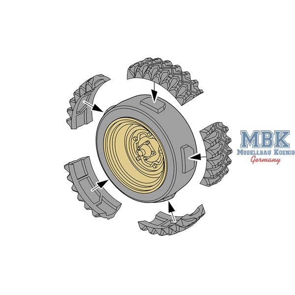 Due to material shortages, many Schwimmwagens were equipped with 133 mm tires, while vehicles with wider 200 mm tires offered significantly better off-road capability.