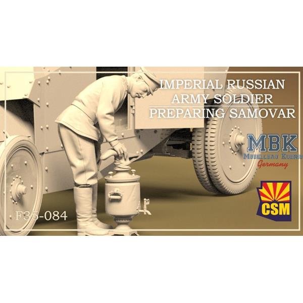 Imperial Russian Army soldier preparing samovar