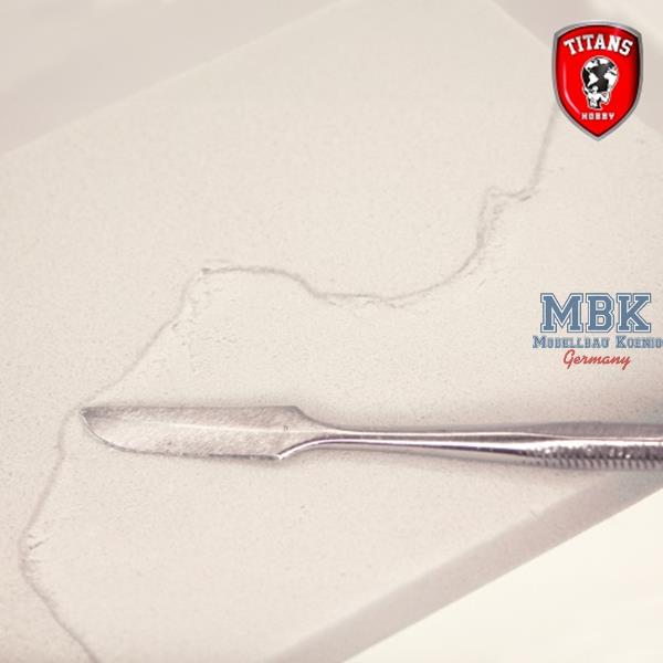 "The Wall" is glued with white vinyl glue (Titans Hobby ref. TTH502), is a resistant material, is not afraid of water and humidity and is very light, thus allowing the modeller to have no limits in the creation of complex dioramas, railway/architectural models and nativity scenes in all scales. "The Wall" generates chips and little dust during processing and is practically odourless.