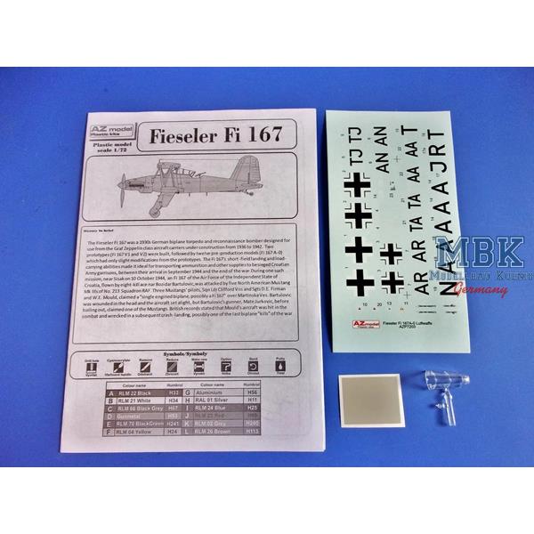 Plastic model kit for building a Fieseler Fi 167A-0 of German Luftwaffe