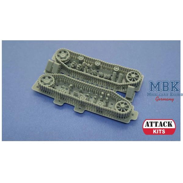 The kit includes 3D-printed tracks/running gear and base parts, as well as a turned brass gun barrel. Decals are included for depicting two tanks used on the Eastern Front.